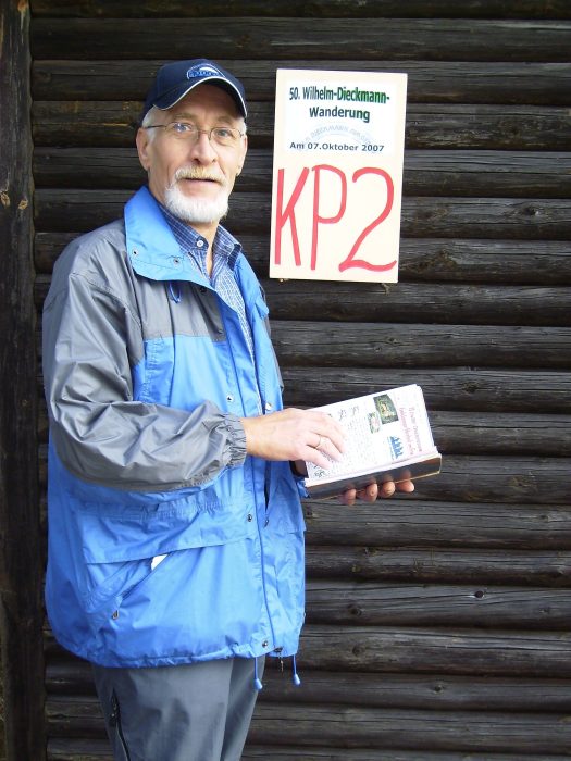 Wanderstatistiker, der sich jeden Kontrollpunkt nochmals extra in
